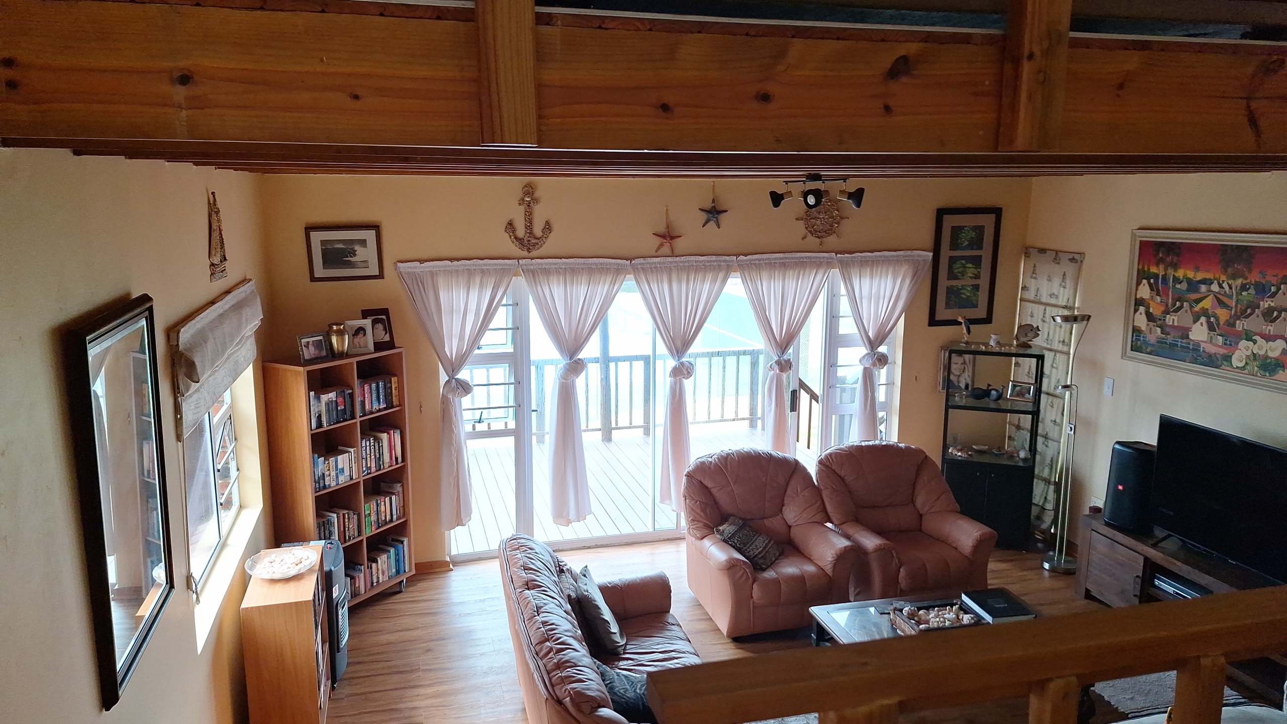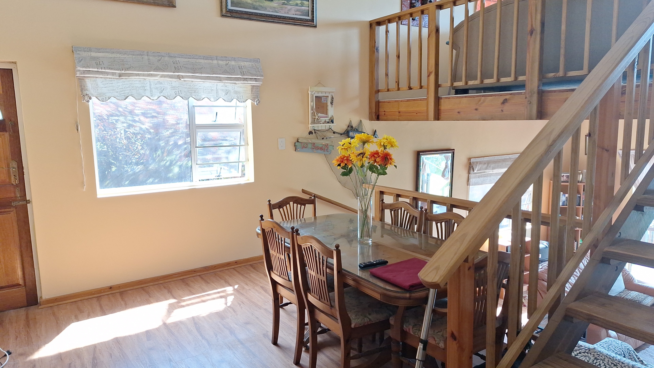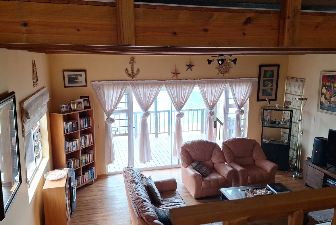 Beautifully designed family home, 500m from exquisite private beaches with a 180° seaview, situated +- 50 km north of East London on the Wild Coast for the discerned buyer. 4 Bedrooms all with modern built in cupboards, 3 Bathrooms of which 2 are ensuite, 2 lounges, Dining room, huge modern kitchen with beautiful “African Dawn” granite tops and plenty cupboard space, separate scullery, very private courtyard with braai and pizza oven leading off the kitchen, enclosed garden, Solar panels with Inverter and Battery, 4 rain water tanks all with pumps connected to the house system, 3 wooden decks all with beautiful seaviews. Vinal flooring, double garage with a huge attic for storage. Situated in a very well run, secure Estate with 24/7 security. The Estate has a clubhouse, kids playground, put put course and beautiful swimming pool as well as a stunning, private boardwalk for sundowners!